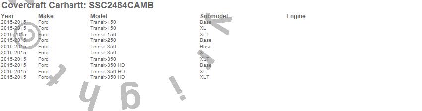 Below is an abbreviated list of applications for the Covercraft Carhartt SeatSaver.Transit-150, Transit-250, Transit-350, Transit-350 HD, Ford, 2015