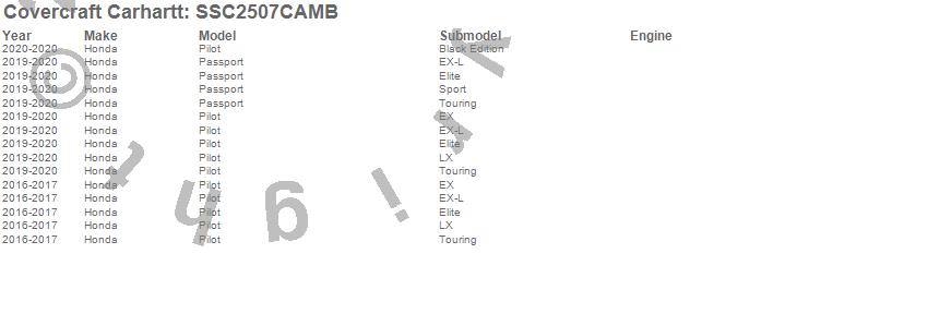 Below is an abbreviated list of applications for the Covercraft Carhartt SeatSaver.Passport, Pilot, Honda, 2020, 2019, 2017, 2016