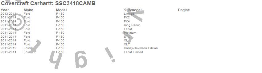 Below is an abbreviated list of applications for the Covercraft Carhartt SeatSaver.F-150, Ford, 2014, 2013, 2012, 2011