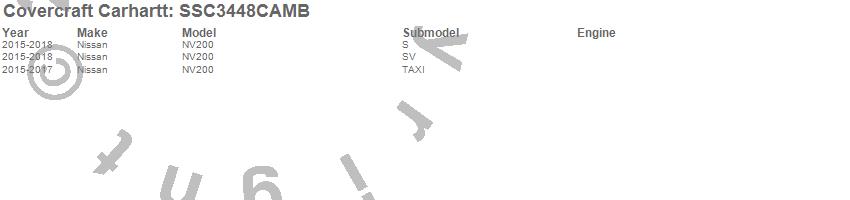 Below is an abbreviated list of applications for the Covercraft Carhartt SeatSaver.NV200, Nissan, 2021, 2020, 2019, 2018, 2017, 2016, 2015