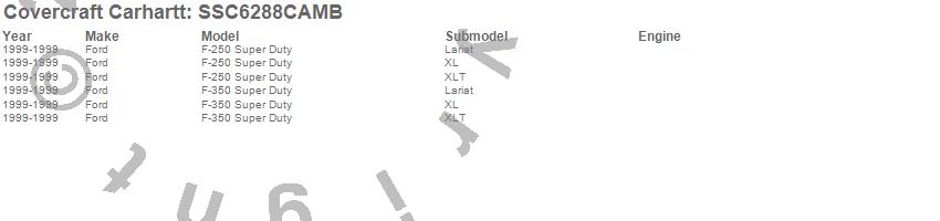 Below is an abbreviated list of applications for the Covercraft Carhartt SeatSaver.F-250 Super Duty, F-350 Super Duty, Ford, 1999