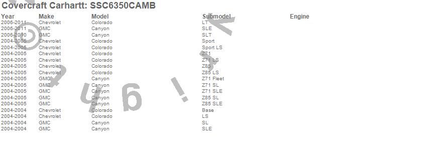 Below is an abbreviated list of applications for the Covercraft Carhartt SeatSaver.Canyon, Colorado, Chevrolet, GMC, 2011, 2010, 2009, 2008, 2007, 2006, 2005, 2004
