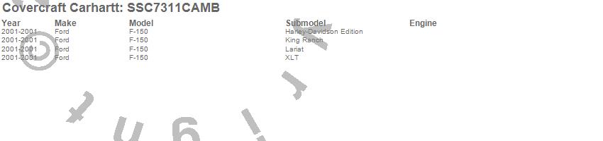 Below is an abbreviated list of applications for the Covercraft Carhartt SeatSaver.F-150, Ford, 2001