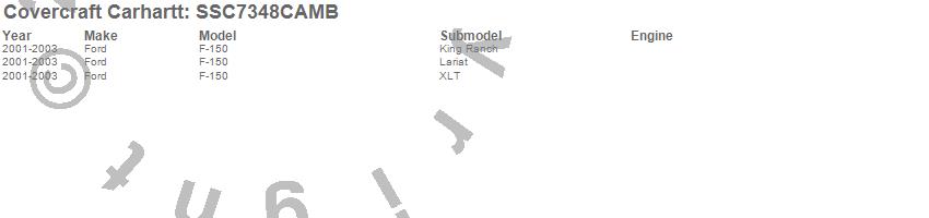 Below is an abbreviated list of applications for the Covercraft Carhartt SeatSaver.F-150, Ford, 2003, 2002, 2001