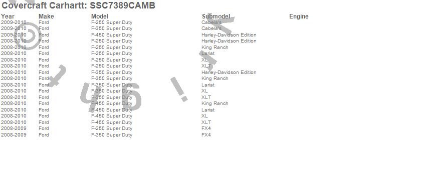 Below is an abbreviated list of applications for the Covercraft Carhartt SeatSaver.F-250 Super Duty, F-350 Super Duty, F-450 Super Duty, Ford, 2010, 2009, 2008