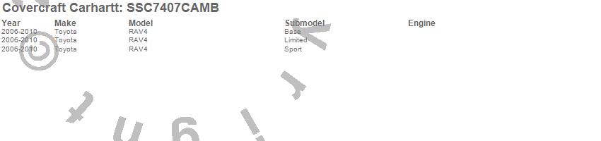 Below is an abbreviated list of applications for the Covercraft Carhartt SeatSaver.RAV4, Toyota, 2010, 2009, 2008, 2007, 2006