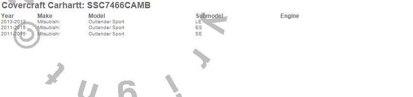 Below is an abbreviated list of applications for the Covercraft Carhartt SeatSaver.Outlander Sport, Mitsubishi, 2015, 2014, 2013, 2012, 2011