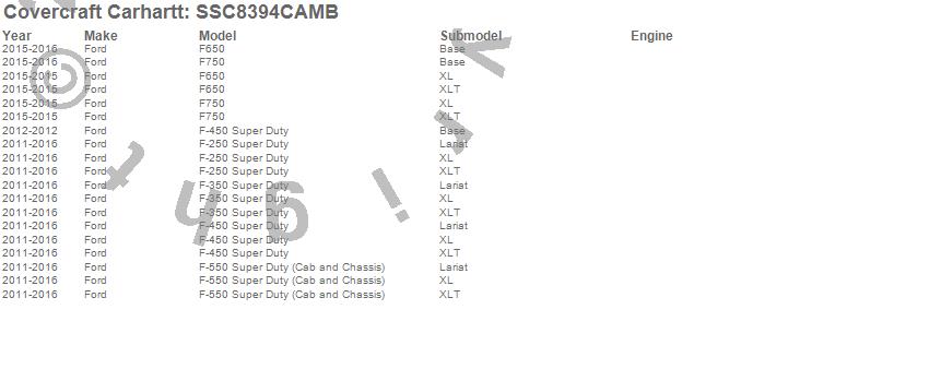 Below is an abbreviated list of applications for the Covercraft Carhartt SeatSaver.F-250 Super Duty, F-350 Super Duty, F-450 Super Duty, F-550 Super Duty, F-650, F-750, F650, F750, Ford, 2025, 2024, 2021, 2016, 2015, 2014, 2013, 2012, 2011