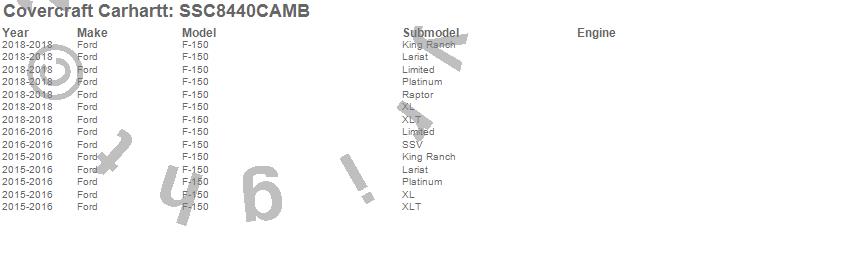Below is an abbreviated list of applications for the Covercraft Carhartt SeatSaver.F-150, Ford, 2018, 2016, 2015