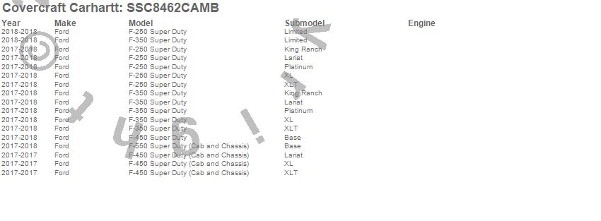 Below is an abbreviated list of applications for the Covercraft Carhartt SeatSaver.F-250 Super Duty, F-350 Super Duty, F-450 Super Duty, F-550 Super Duty, Ford, 2018, 2017