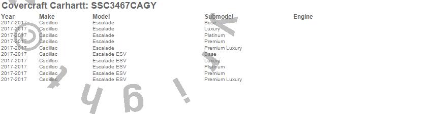 Below is an abbreviated list of applications for the Covercraft Carhartt SeatSaver.Escalade, Escalade ESV, Cadillac, 2017