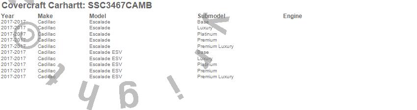 Below is an abbreviated list of applications for the Covercraft Carhartt SeatSaver.Escalade, Escalade ESV, Cadillac, 2017