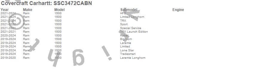 Below is an abbreviated list of applications for the Covercraft Carhartt SeatSaver.1500, Ram, 2026, 2025, 2024, 2023, 2022, 2021, 2020, 2019