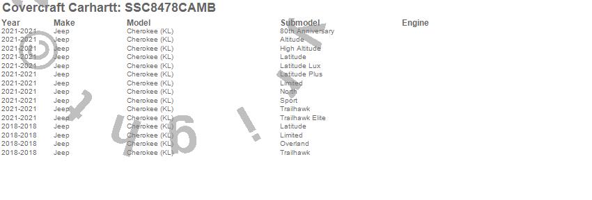 Below is an abbreviated list of applications for the Covercraft Carhartt SeatSaver.Cherokee (KL), Jeep, 2021, 2020, 2018
