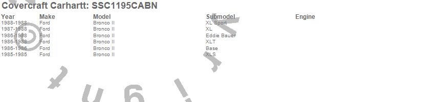 Below is an abbreviated list of applications for the Covercraft Carhartt SeatSaver.Bronco II, Ford, 1988, 1987, 1986, 1985