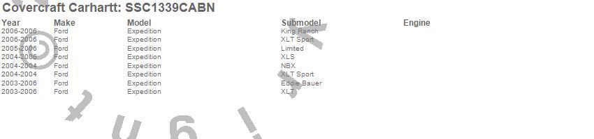 Below is an abbreviated list of applications for the Covercraft Carhartt SeatSaver.Expedition, Ford, 2006, 2005, 2004, 2003