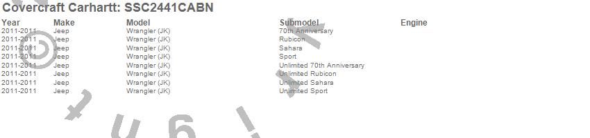 Below is an abbreviated list of applications for the Covercraft Carhartt SeatSaver.Wrangler (JK), Jeep, 2011