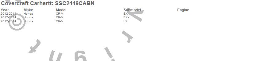 Below is an abbreviated list of applications for the Covercraft Carhartt SeatSaver.CR-V, Honda, 2014, 2013, 2012