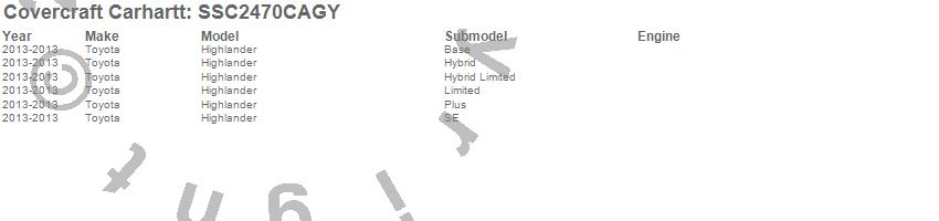 Below is an abbreviated list of applications for the Covercraft Carhartt SeatSaver.Highlander, Toyota, 2013