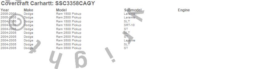 Below is an abbreviated list of applications for the Covercraft Carhartt SeatSaver.Ram 1500, Ram 2500, Ram 3500, Dodge, 2005, 2004