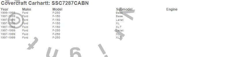 Below is an abbreviated list of applications for the Covercraft Carhartt SeatSaver.F-150, F-250, Ford, 1999, 1998, 1997
