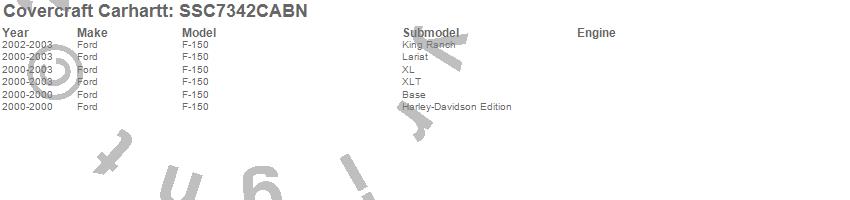 Below is an abbreviated list of applications for the Covercraft Carhartt SeatSaver.F-150, Ford, 2003, 2002, 2001, 2000