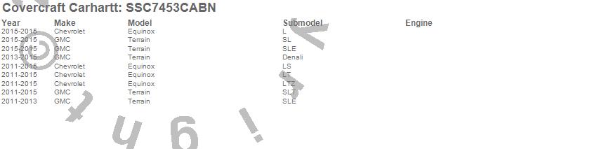 Below is an abbreviated list of applications for the Covercraft Carhartt SeatSaver.Equinox, Terrain, Chevrolet, GMC, 2015, 2014, 2013, 2012, 2011
