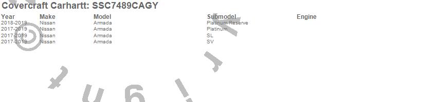 Below is an abbreviated list of applications for the Covercraft Carhartt SeatSaver.Armada, Nissan, 2024, 2023, 2022, 2021, 2020, 2019, 2018, 2017