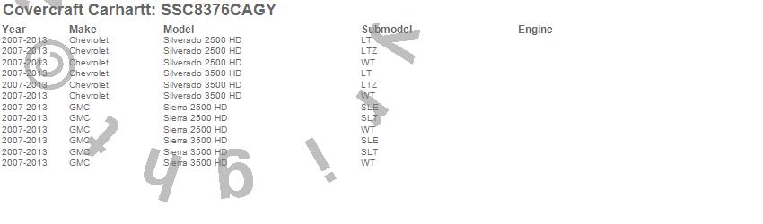 Below is an abbreviated list of applications for the Covercraft Carhartt SeatSaver.Sierra 2500 HD, Sierra 3500 HD, Silverado 2500 HD, Silverado 3500 HD, Chevrolet, GMC, 2013, 2012, 2011, 2010, 2009, 2008, 2007