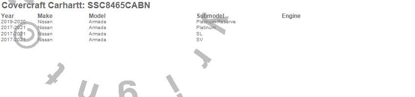 Below is an abbreviated list of applications for the Covercraft Carhartt SeatSaver.Armada, Nissan, 2020, 2019, 2018, 2017