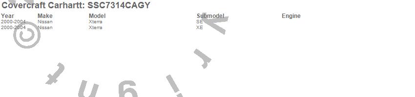 Below is an abbreviated list of applications for the Covercraft Carhartt SeatSaver.Xterra, Nissan, 2004, 2003, 2002, 2001, 2000