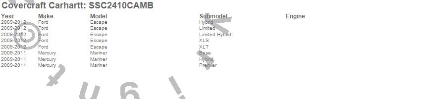 Below is an abbreviated list of applications for the Covercraft Carhartt SeatSaver.Escape, Mariner, Ford, Mercury, 2012, 2011, 2010, 2009