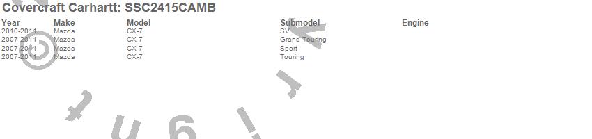 Below is an abbreviated list of applications for the Covercraft Carhartt SeatSaver.CX-7, Mazda, 2011, 2010, 2009, 2008, 2007