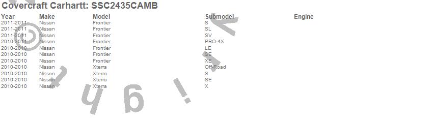 Below is an abbreviated list of applications for the Covercraft Carhartt SeatSaver.Frontier, Xterra, Nissan, 2011, 2010