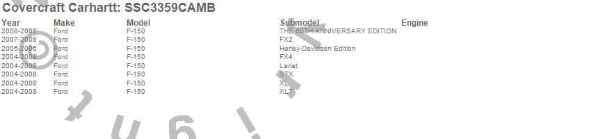 Below is an abbreviated list of applications for the Covercraft Carhartt SeatSaver.F-150, Ford, 2008, 2007, 2006, 2005, 2004