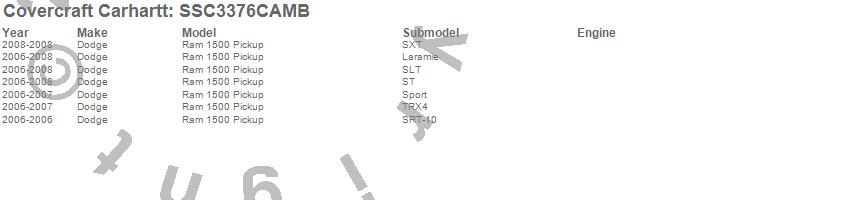 Below is an abbreviated list of applications for the Covercraft Carhartt SeatSaver.Ram 1500, Dodge, 2008, 2007, 2006