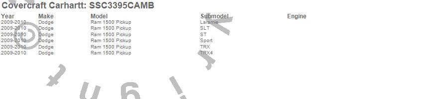 Below is an abbreviated list of applications for the Covercraft Carhartt SeatSaver.Ram 1500, Dodge, 2010, 2009