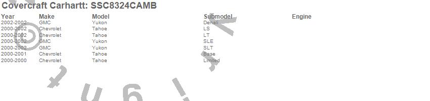 Below is an abbreviated list of applications for the Covercraft Carhartt SeatSaver.Tahoe, Yukon, Chevrolet, GMC, 2002, 2001, 2000