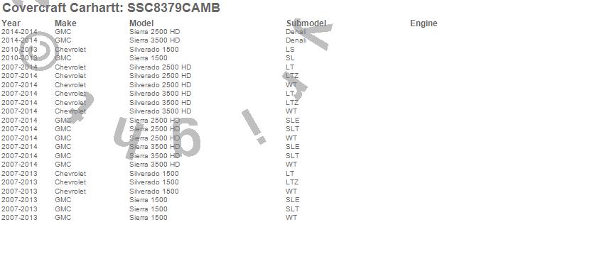 Below is an abbreviated list of applications for the Covercraft Carhartt SeatSaver.Sierra 1500, Sierra 2500 HD, Sierra 3500 HD, Silverado 1500, Silverado 2500 HD, Silverado 3500 HD, Chevrolet, GMC, 2014, 2013, 2012, 2011, 2010, 2009, 2008, 2007