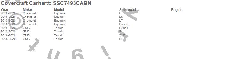 Below is an abbreviated list of applications for the Covercraft Carhartt SeatSaver.Equinox, Terrain, Chevrolet, GMC, 2020, 2019, 2018