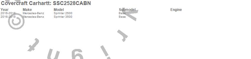 Below is an abbreviated list of applications for the Covercraft Carhartt SeatSaver.Sprinter 2500, Sprinter 3500, Mercedes-Benz, 2018, 2017, 2016