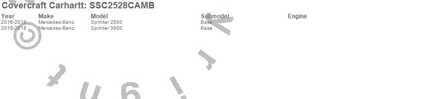 Below is an abbreviated list of applications for the Covercraft Carhartt SeatSaver.Sprinter 2500, Sprinter 3500, Mercedes-Benz, 2018, 2017, 2016