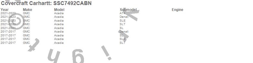 Below is an abbreviated list of applications for the Covercraft Carhartt SeatSaver.Acadia, GMC, 2023, 2022, 2021, 2020, 2017