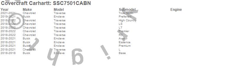 Below is an abbreviated list of applications for the Covercraft Carhartt SeatSaver.Enclave, Traverse, Buick, Chevrolet, 2022, 2021, 2020, 2019, 2018