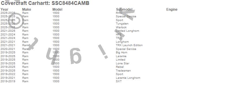 Below is an abbreviated list of applications for the Covercraft Carhartt SeatSaver.1500, Ram, 2025, 2024, 2023, 2022, 2021, 2020, 2019