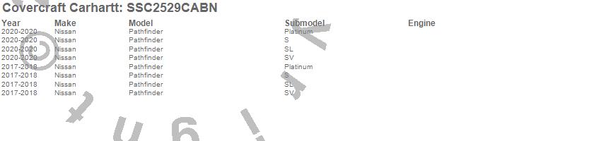 Below is an abbreviated list of applications for the Covercraft Carhartt SeatSaver.Pathfinder, Nissan, 2020, 2018, 2017
