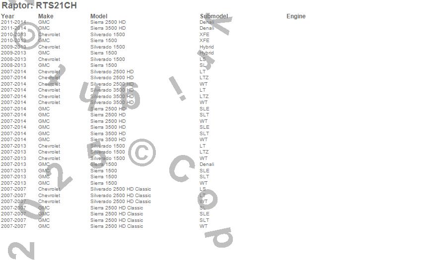 Below is an abbreviated list of applications for the RT Steps.Sierra 1500, Sierra 2500 HD, Sierra 2500 HD Classic, Sierra 3500 HD, Silverado 1500, Silverado 2500 HD, Silverado 2500 HD Classic, Silverado 3500 HD, Chevrolet, GMC, 2014, 2013, 2012, 2011, 2010, 2009, 2008, 2007
