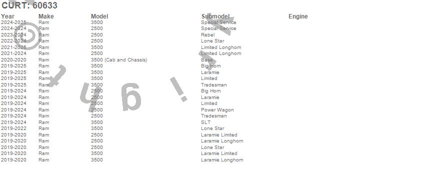 Brand: CURTPart Number: 60633Gooseneck Trailer Hitch Ball Type: 35000lbs. Gross Trailer Weight - 2.3125 in. Ball Dia.UPC: 612314606337