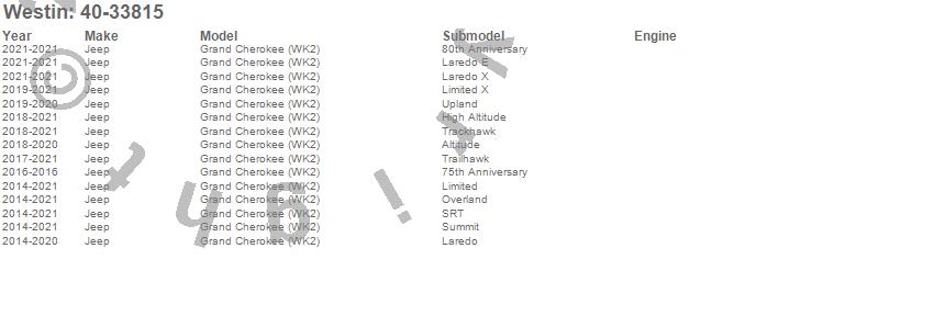 Below is an abbreviated list of applications for the Sportsman X Grille Guard.Grand Cherokee (WK2), Jeep, 2021, 2020, 2019, 2018, 2017, 2016, 2015, 2014