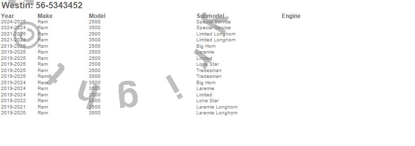 Brand: WestinPart Number: 56-5343452Nerf/Step Bar (Wheel to Wheel) Type: Textured Black Steel - Incl. Mounting Bracket - Hardware/Install SheetUPC: 707742098493